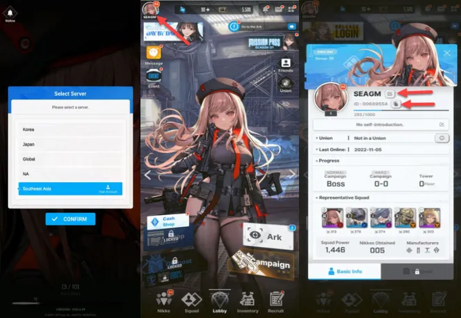 How to find GODDESS OF VICTORY: NIKKE Player ID & Character Name?